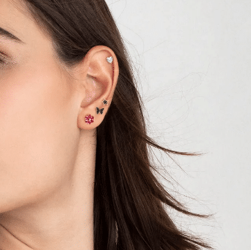 Set di 5 orecchini in argento 925 in rosa con zirconi colorati.