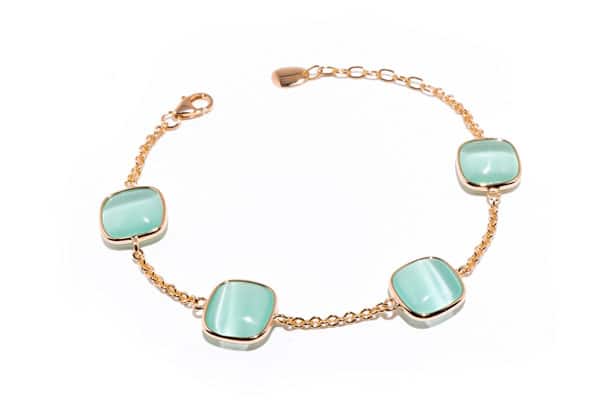 Il Bracciale Madì 38910 della Collezione MONO è un gioiello che esprime forza e personalità attraverso la purezza del colore e la semplicità delle forme. Realizzato in argento 925 con una raffinata placcatura in oro rosé, presenta quattro pietre in quarzo idrotermale nel suggestivo colore verde acqua, montate senza castone per esaltare la loro luminosità naturale. Il design essenziale e la qualità artigianale lo rendono un accessorio versatile, adatto a ogni occasione.