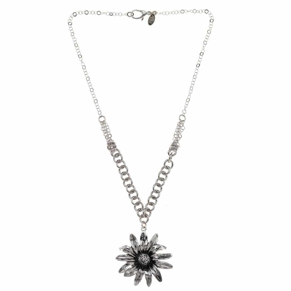 Collana in argento 925, un gioiello per comunicare gioia e allegria con una stupenda margherita. Lunghezza cm 45.