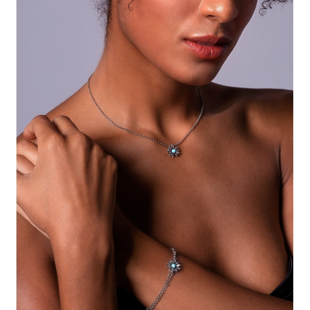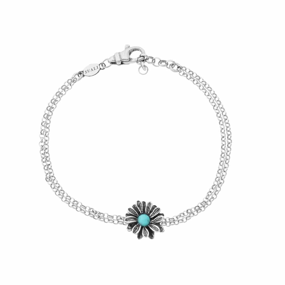 Il bracciale Margherita con Turchese di Suali incarna l’eleganza della natura. Con il suo design raffinato, che unisce la delicatezza della margherita al vibrante turchese, è il tocco perfetto per aggiungere un tocco di freschezza e colore al tuo stile, rendendo ogni movimento ancora più affascinante.