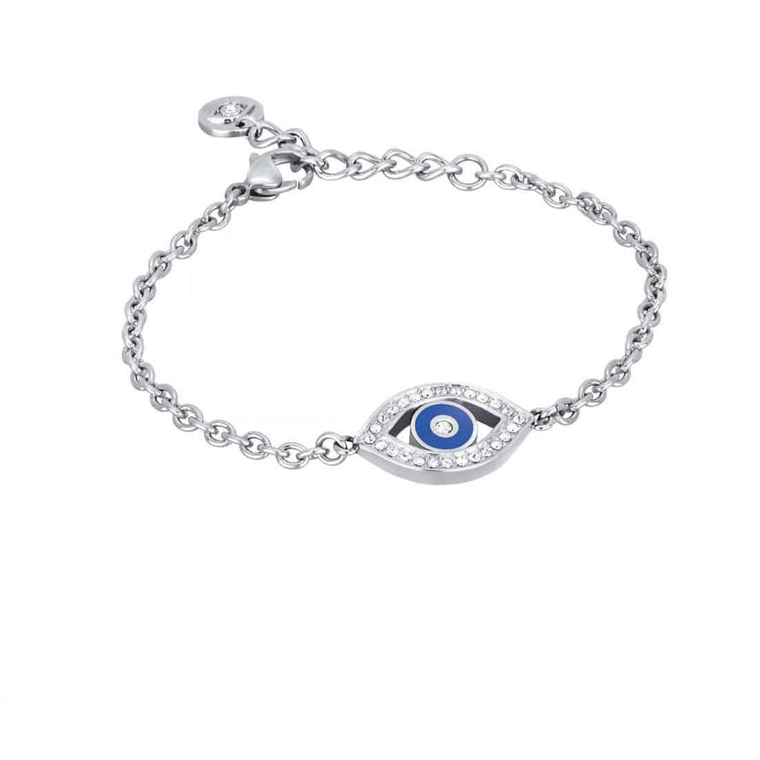 Il Bracciale 2Jewels 231511, parte della collezione Eyes, è un gioiello che fonde simbolismo antico e design moderno. Realizzato in acciaio lucido, presenta un ciondolo raffigurante l’occhio egizio, simbolo di protezione e intuizione, decorato con smalto blu e cristalli che ne esaltano la luminosità.