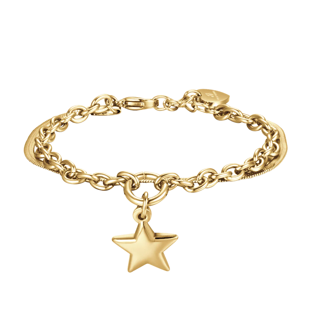 Il bracciale donna Luca Barra BK2209 è un gioiello semplice ma ricco di significato. Realizzato in acciaio dorato giallo, è impreziosito da una stellina centrale, simbolo di luce e desideri. La lunghezza regolabile (17 + 3 cm) lo rende perfetto per ogni polso, mentre la chiusura a moschettone assicura una vestibilità comoda e sicura. Elegante nella sua essenzialità, è l’accessorio ideale per aggiungere un tocco di brillantezza ad ogni look quotidiano o per un pensiero speciale.