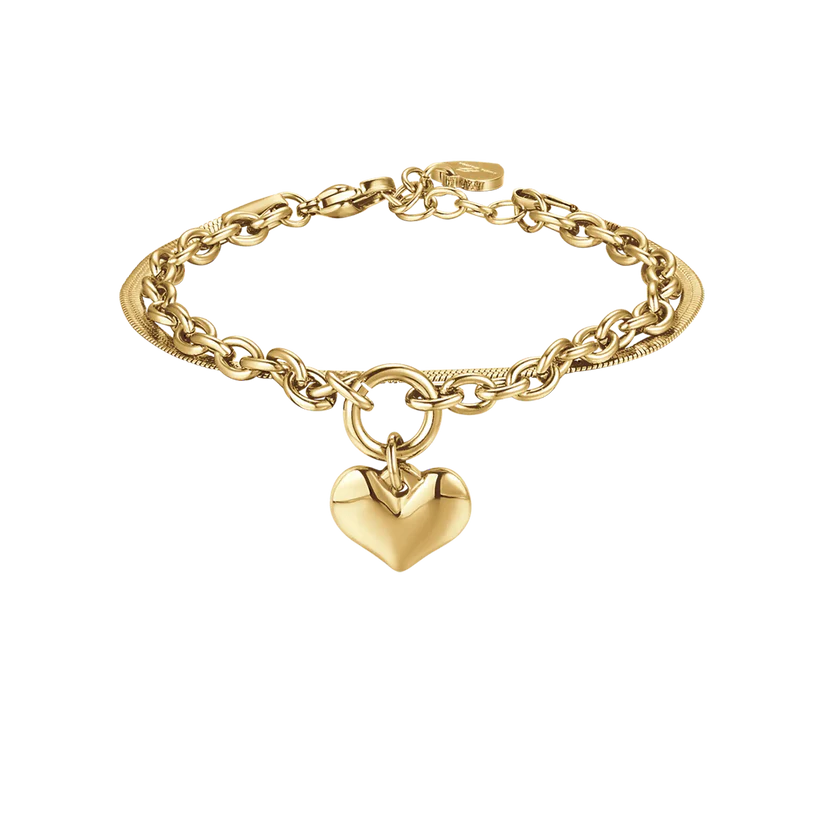Un bracciale multifilo simbolo di dolcezza e luce: il Luca Barra BK2211 è realizzato in acciaio dorato, con un design delicato e femminile. Al centro, un cuore pendente lucido cattura lo sguardo, perfetto per esprimere affetto e romanticismo. La lunghezza regolabile (17 + 3 cm) assicura una vestibilità comoda e personalizzata, mentre la chiusura a moschettone garantisce praticità e sicurezza. Un accessorio raffinato, ideale per ogni giorno o per un regalo speciale.