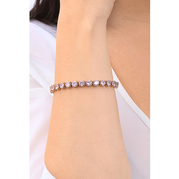 Il bracciale donna Luca Barra BK2371 è un gioiello dal design raffinato e luminoso, perfetto per aggiungere un tocco di eleganza femminile ad ogni outfit. Realizzato in acciaio inossidabile dorato, presenta una fila di cristalli rosa taglio brillante incastonati singolarmente, che riflettono la luce in modo incantevole.