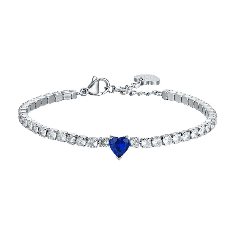 Bracciale Donna Luca Barra BK2521 Tennis in Acciaio con Cuore Blu e Cristalli Bianchi – Eleganza Romantica