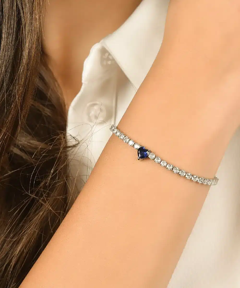 – Colore: Argento con cristalli bianchi + cuore blu