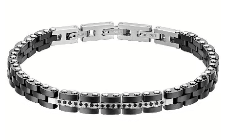 Bracciale uomo Luca Barra BA1674 in acciaio e ceramica nera, impreziosito da eleganti cristalli neri. Un mix perfetto di raffinatezza e carattere, ideale per l’uomo che ama distinguersi con stile.