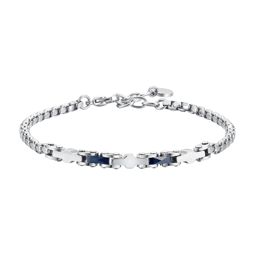 Il bracciale da uomo Luca Barra BA1795 è l’accessorio ideale per chi ama uno stile moderno e deciso. Realizzato in acciaio anallergico di alta qualità, si distingue per il suo design tecnico e minimal con maglia a catena e inserto blu centrale effetto meccanico, ispirato agli elementi industriali.