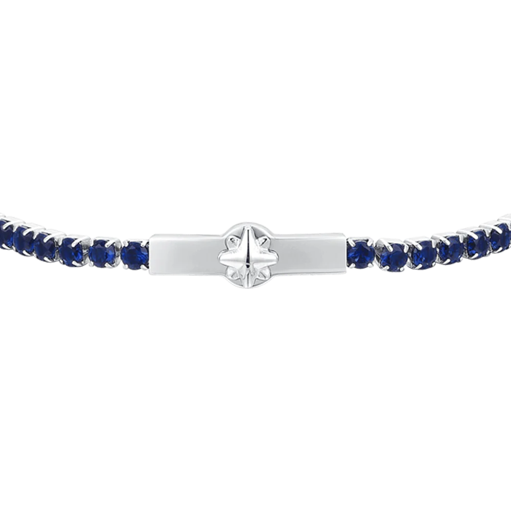 Bracciale Uomo Luca Barra BA1813 – Acciaio e Pietre Blu con Rosa Dei Venti