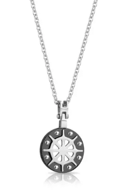 Collana in acciaio con pendente raffigurante un timone.
