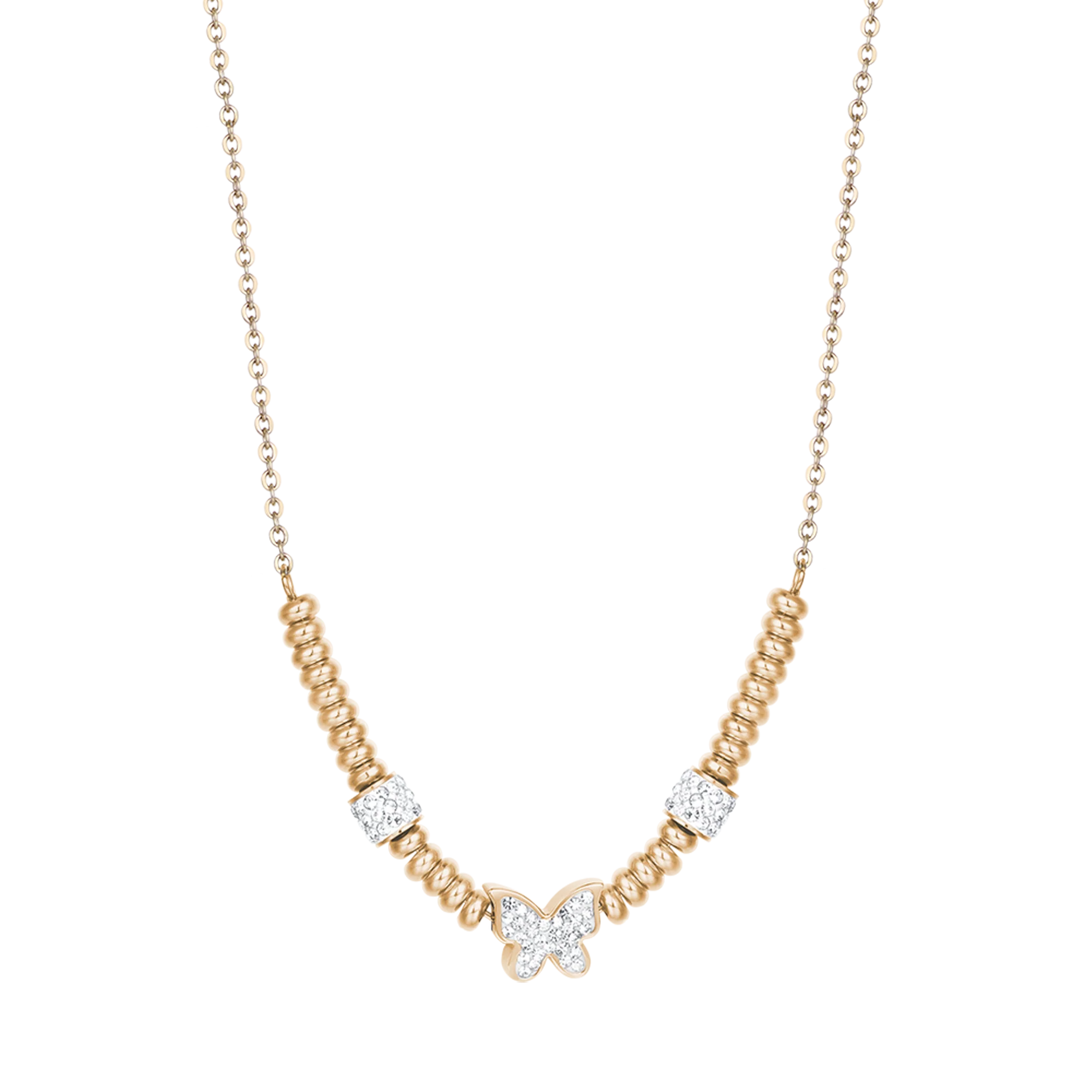 Collana Donna Luca Barra CK1493 in Acciaio Dorato con Farfalla e Cristalli – Eleganza Romantica e Brillantezza Unica