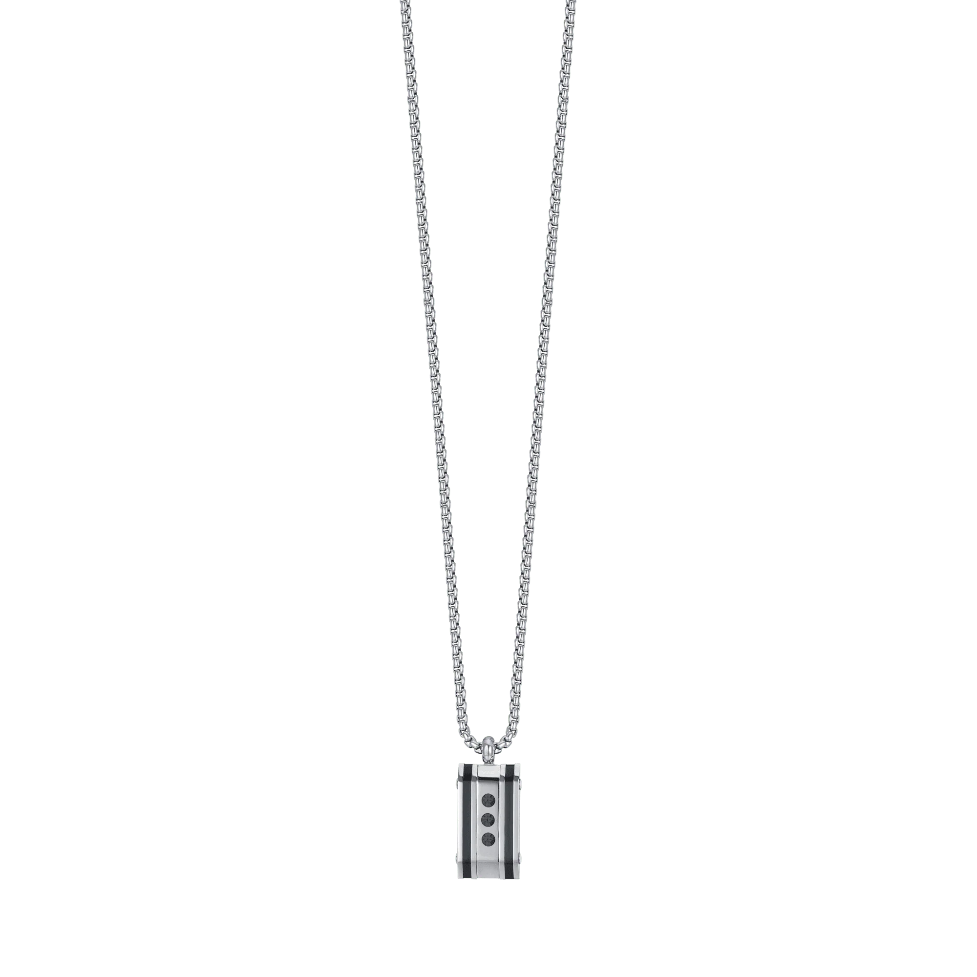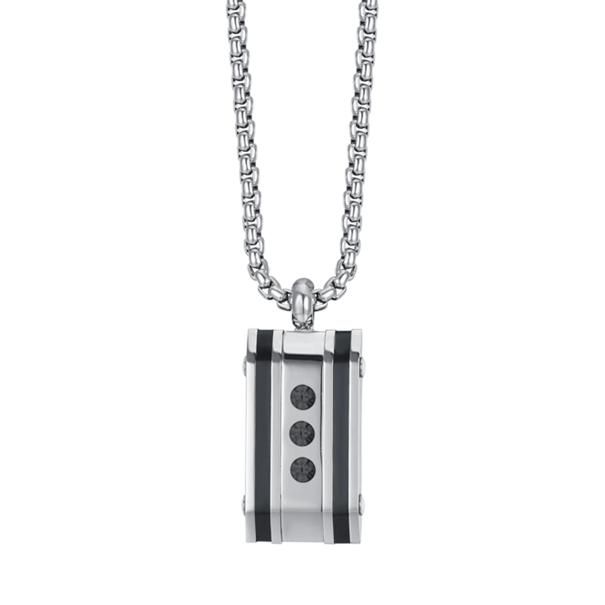 La collana uomo Luca Barra CA453 è il gioiello perfetto per chi cerca uno stile deciso e contemporaneo. Realizzata in acciaio inossidabile di alta qualità, presenta un pendente rettangolare dal design geometrico con tre cristalli neri tondi decorativi che donano un tocco high-tech ed elegante.