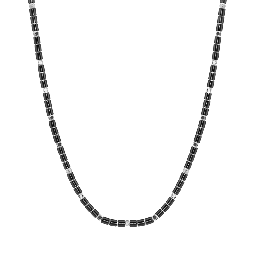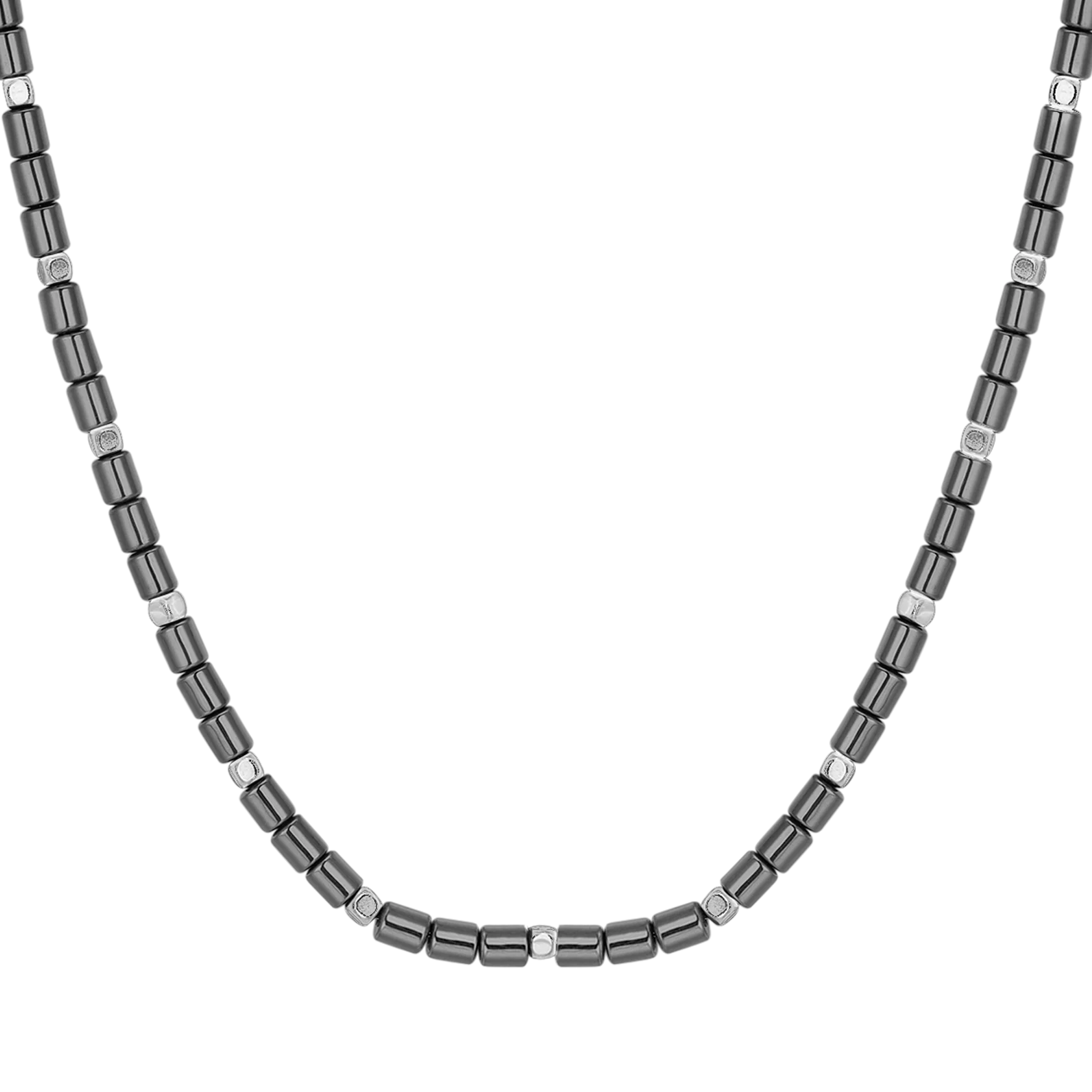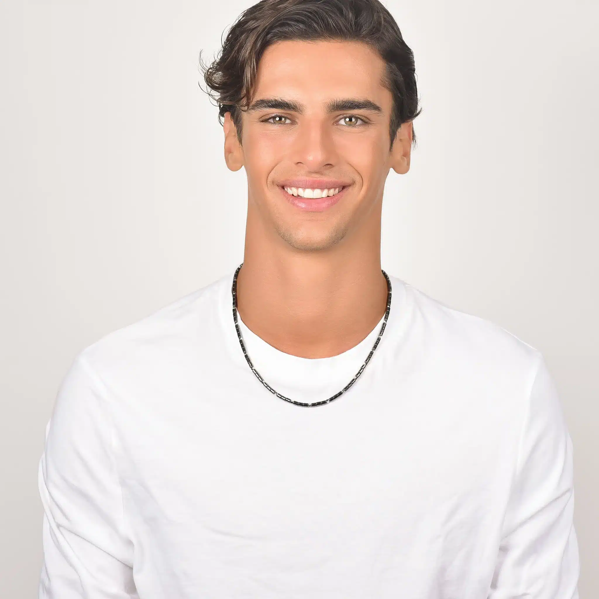 Collana Uomo Luca Barra CL305 – Collana Perline Cilindriche Nere e Acciaio, Stile Urban Minimal