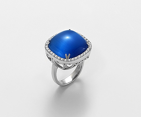 MA7072A4BLU0000 Anello Mikiko Argento 925 Occhio di Gatto Blu e Zirconi