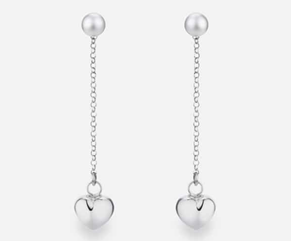 Orecchini Mikiko in argento 925 con perle coltivate d’acqua dolce (6-6,5 mm), luminose e perfettamente sferiche. Un’elegante catenina sottile scende dalla perla e termina con un delicato cuore in argento, creando un raffinato movimento. Un gioiello romantico e moderno, perfetto per valorizzare ogni look con grazia.