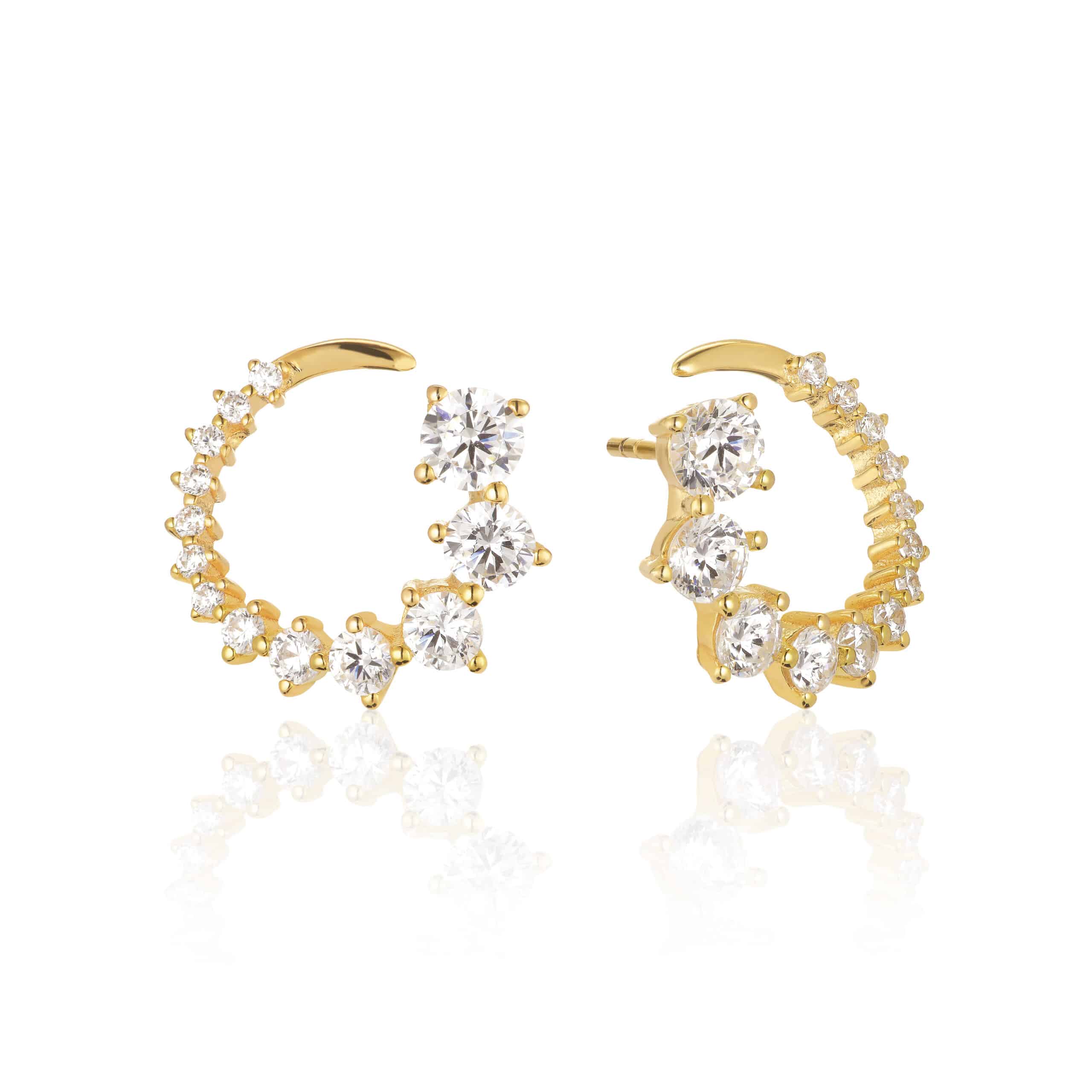 Orecchini in argento Sterling 925 placcato oro 18 carati, superficie lucida con zirconi bianchi a taglio sfaccettato.