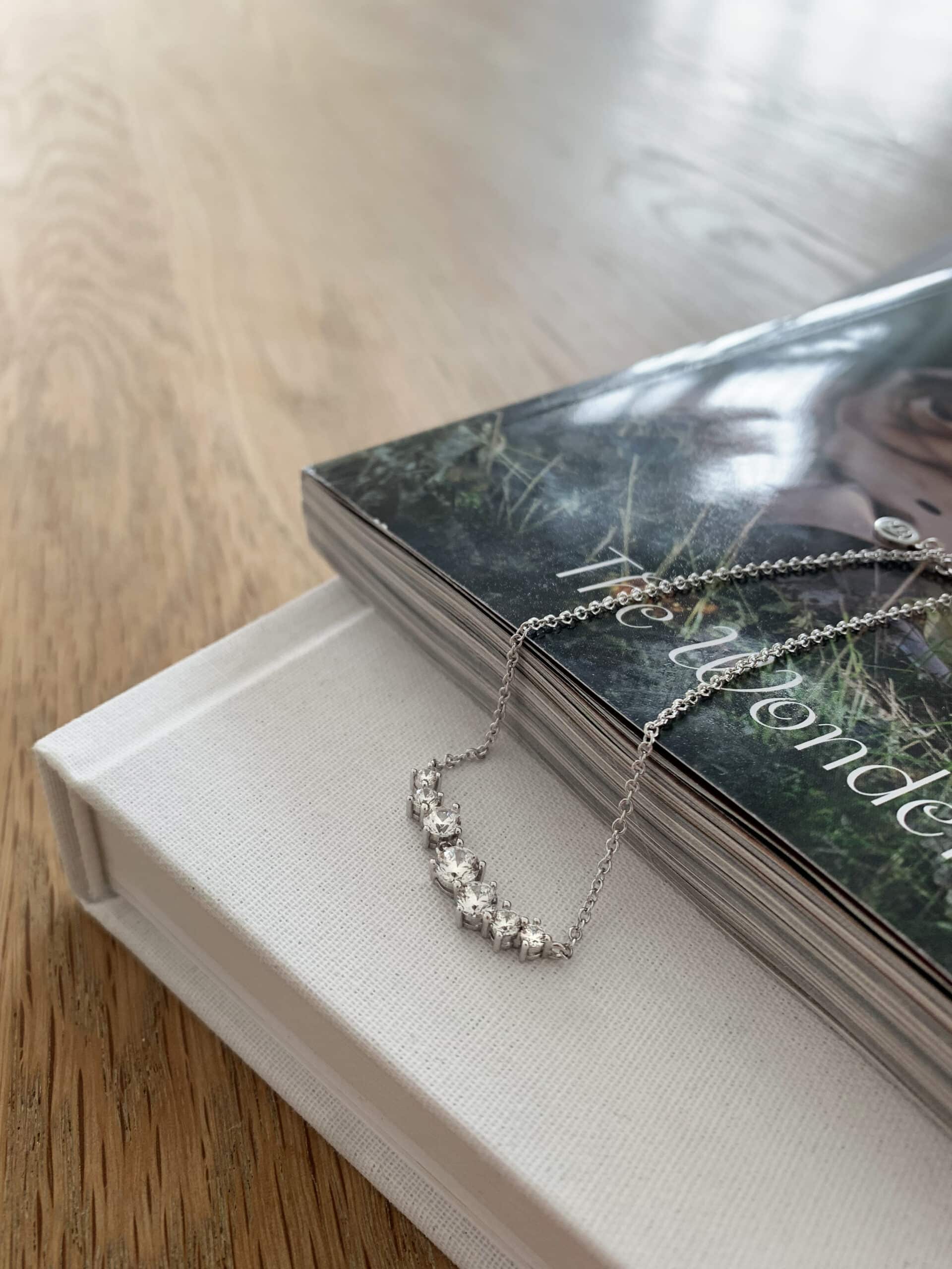 Collana in argento Sterling 925 con rodio, superficie lucida con zirconi bianchi sfaccettati.