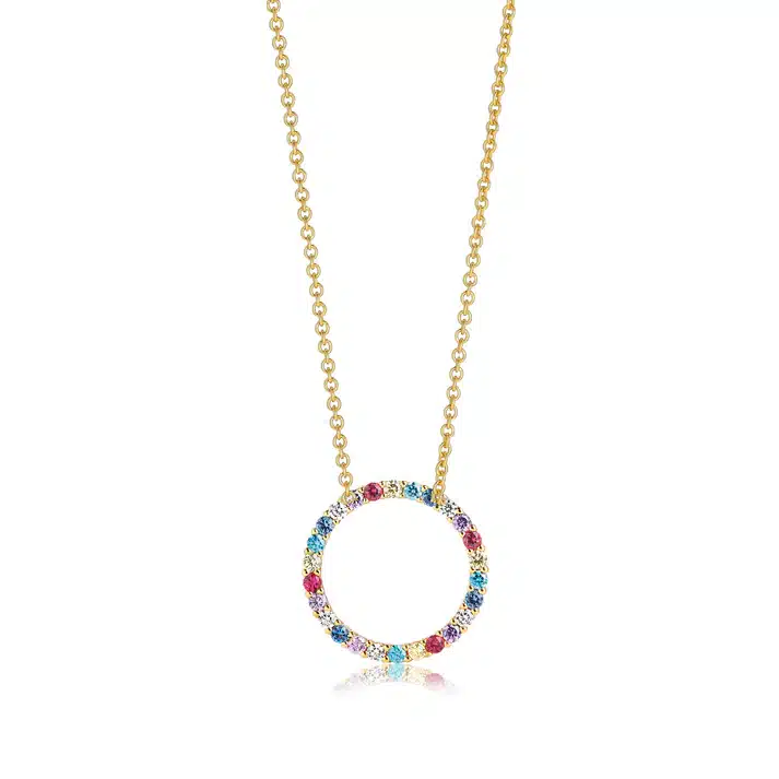 La collana Sif Jakobs SJ-P3120-XCZ45-60 è un gioiello dal fascino irresistibile, perfetto per chi ama brillare con stile. Placcata in oro 18k e impreziosita da una fila di zirconi multicolor, questa collana cattura lo spirito vivace e sofisticato del brand danese, unendo design contemporaneo e dettagli luminosi.