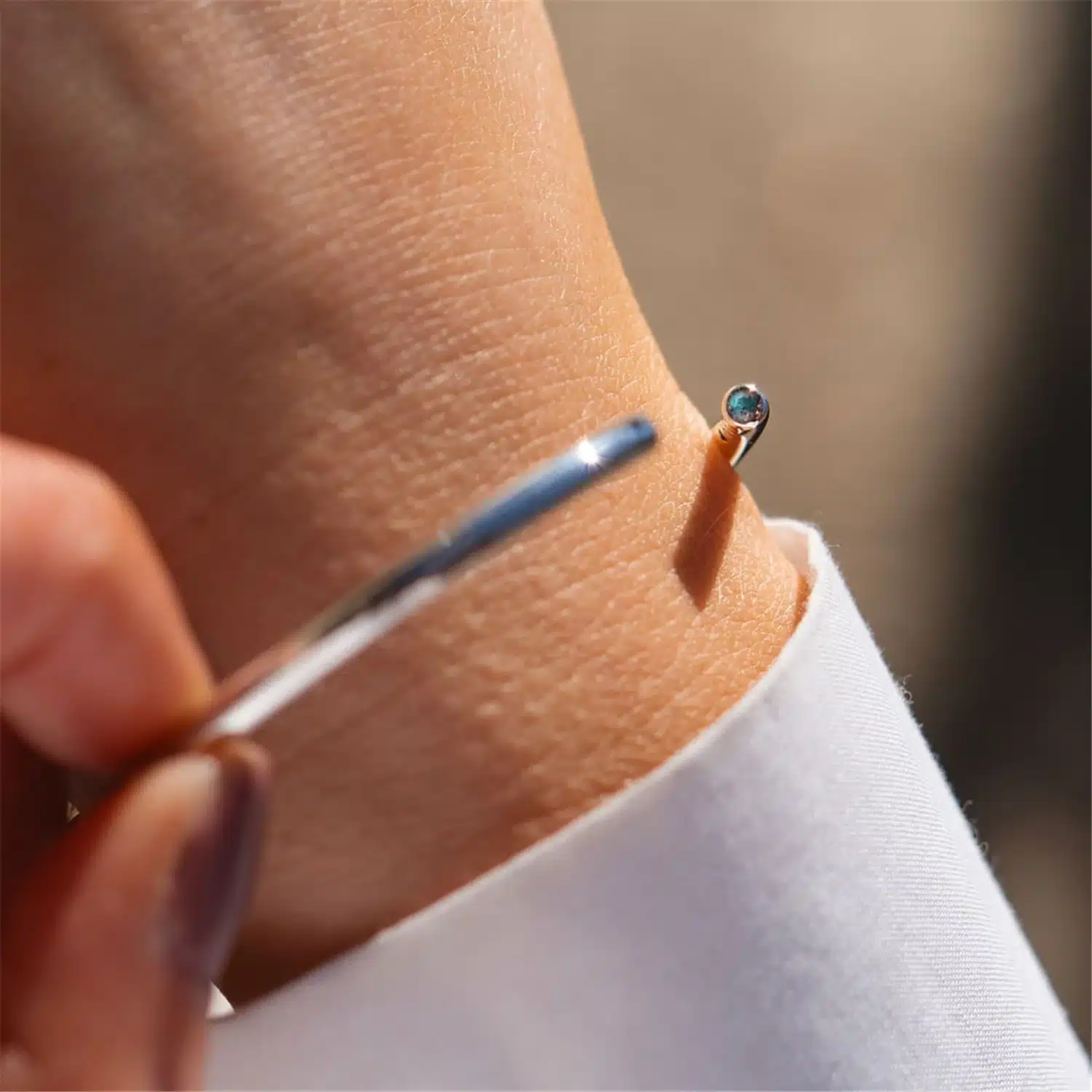 Il bangle in argento 925 ha nella parte terminale una labradorite sfaccettata.​